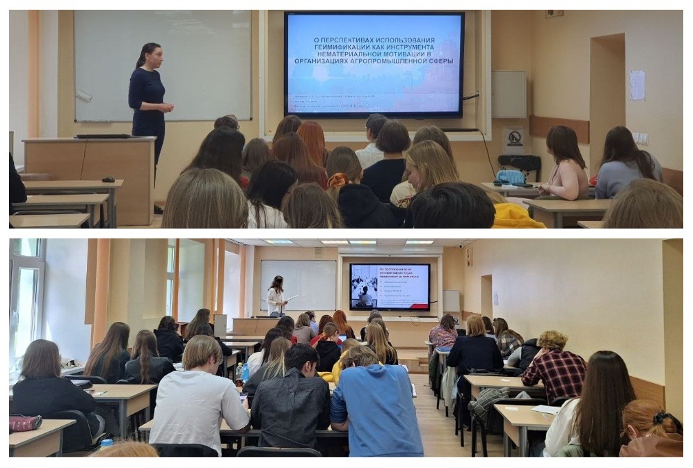 The conference covered the following topics: the development of foreign economic relations under sanctions, forms and methods of tax incentives for small businesses, digital transformation of business processes in industry, and labor market development trends. A. A. Andreenko, in her report «On the Prospects of Using Gamification as a Tool for Non-Material Motivation in Agro-Industrial Organizations,» discussed the essence, main elements, and directions for implementing gamification in the activities of agro-industrial organizations. Additionally, the young researchers presented an ongoing project to the attendees – the educational platform «Kolosok».